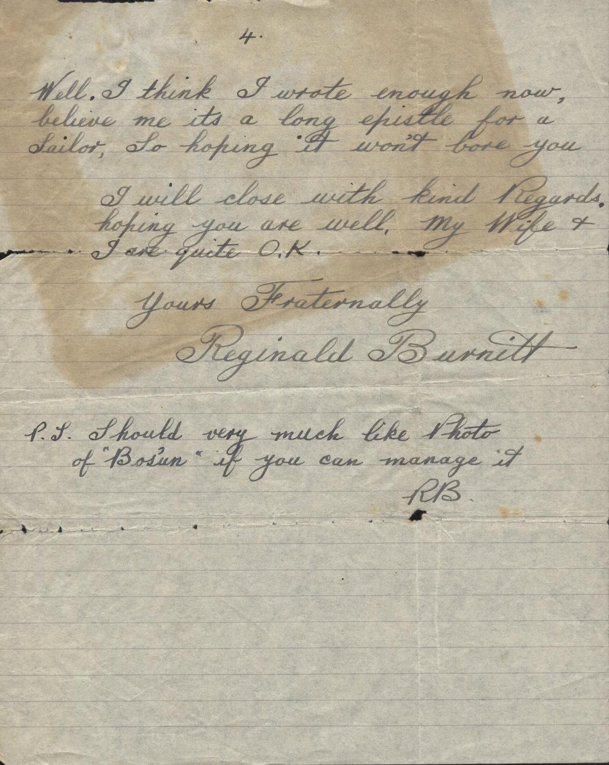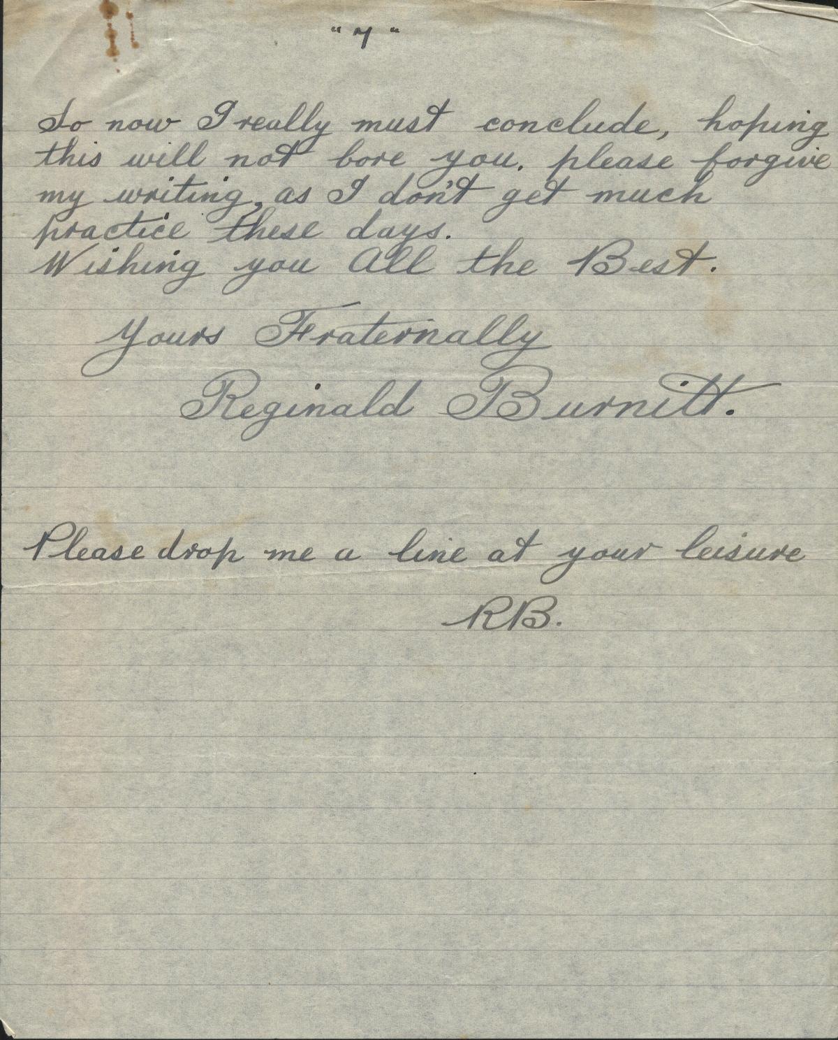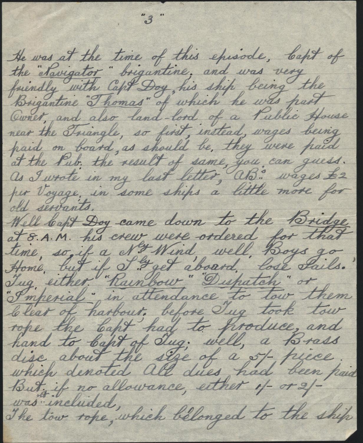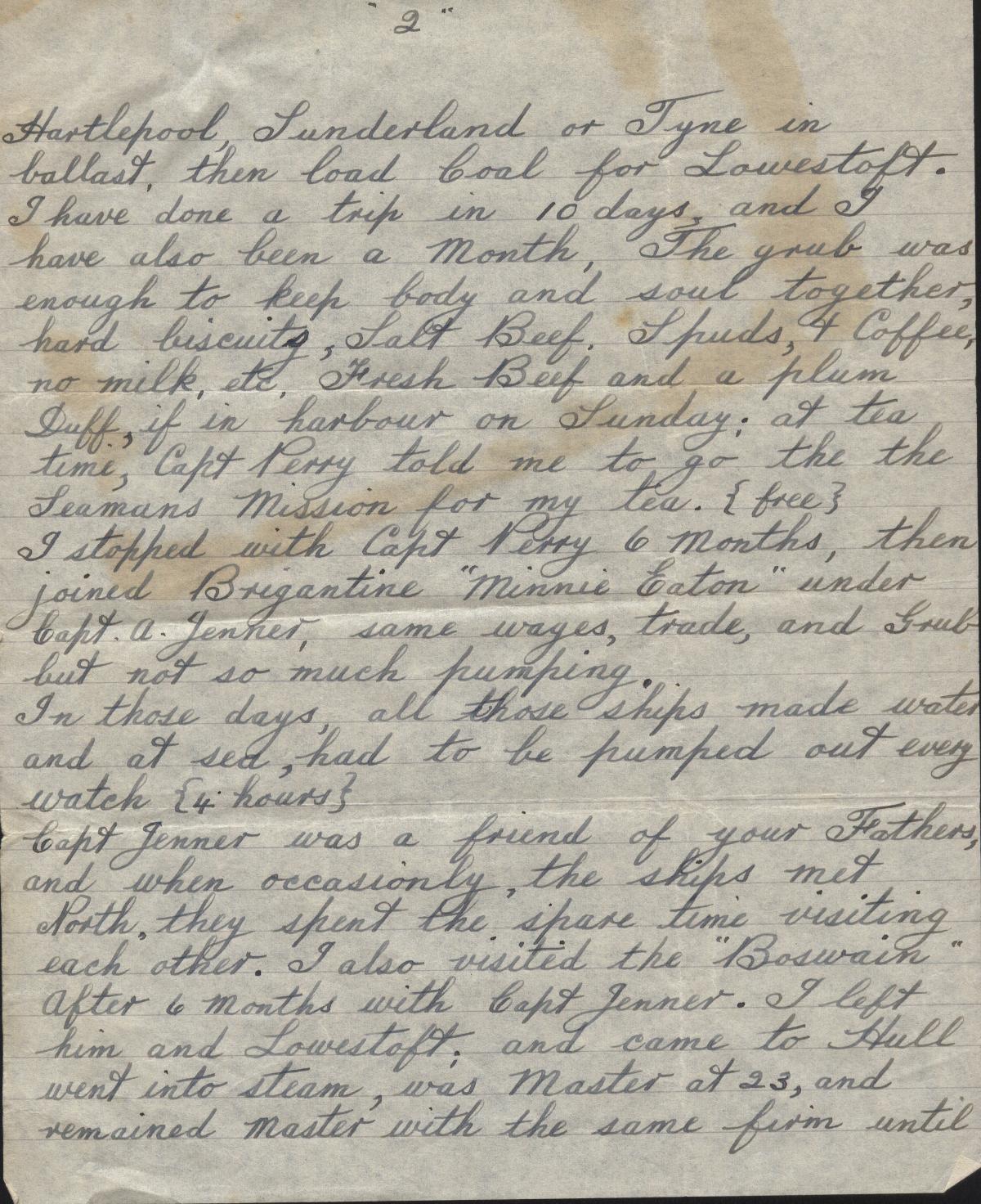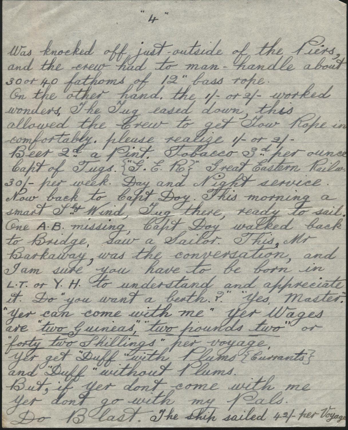 Copies of correspondence between Herbert Nathaniel Barkaway (1903-1976) and Capt. Reginald Burnitt regarding life working on the East Coast sailing vessels in the early 1900's
